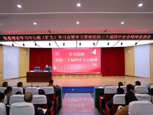 为深入学习贯彻习近平总书记在党的二十届四中全会上的重要讲话精神,切实把思想和行动统一到党中央决策部署上来,12月10日,学院党委书记崩兴宇对二十届四中全会精神进行了专题宣讲,会议由党委副书记、院长汪贤才主持。院党委领导班子成员、各部门主要负责同志、全院副科级以上干部、各党总支班子成员、全体思政教师、专职辅导员及学生代表等200余人参加了会议。