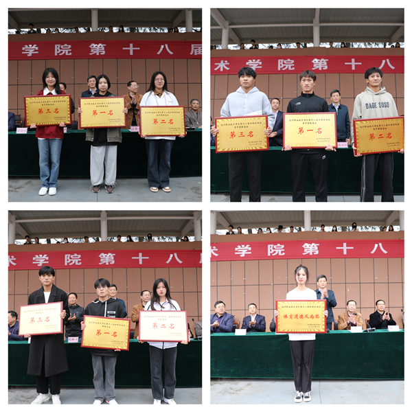 本次运动会共设置个人竞技类项目20项,团体项目5项。经过两天的激烈角逐,获得团体前三名分别是教育系、电子信息与传媒系、生物与健康系,建筑与园林系荣获体育道德风尚奖。
