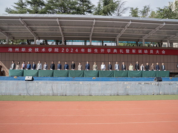 10月21日,池州职业技术学院在田径运动场举行2024级新生开学典礼暨军训动员大会。学院党委书记盛国星,部队代表高双,党委副书记程峥平,党委委员、副院长查正东,党委委员、组织人事处处长余常庚,党委委员、办公室主任马文申,党委委员、教务处处长戴启培出席典礼。学院各部门主要负责同志、教师代表、全体新生辅导员、班主任、军训教官以及 2024级全体新生参加典礼。典礼由党委委员、副院长夏亮主持。