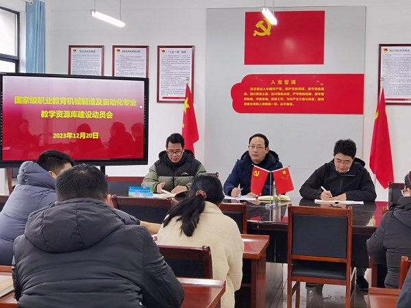 为贯彻落实新一轮国家职业教育教学资源库建设精神,推动教学资源库项目建设。12月20日,机电与汽车系召开国家级职业教育机械制造及自动化专业教学资源库建设动员会。系副主任吴志光出席会议并作动员讲话,系教务科科长章毅、项目负责人陈宏胜及21位项目组成员参会。