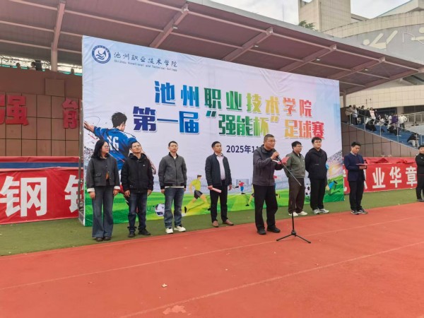 刘春生首先对本届“强能杯”足球赛的顺利开幕表示热烈祝贺。他指出,举办“强能杯”足球赛是学院落实“五育并举”、强化学生综合素质培养的重要举措,对于丰富校园文化生活、增强学生体魄、培养团队协作精神具有重要意义。他希望全体运动员能够发扬顽强拼搏的体育精神,赛出风格、赛出水平,充分展现池职院学子的青春活力与良好风貌,并预祝本届比赛取得圆满成功。