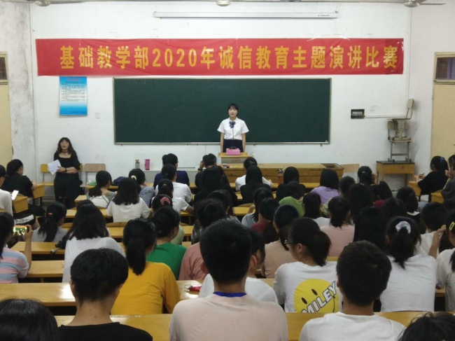 为进一步培育和践行社会主义核心价值观,强化五年一贯制小学教育、学前教育专业学生专业基本功训练,6月15日,池州职业技术学院基础教学部2020年诚信教育主题演讲比赛在尚贤楼一楼多媒体教室顺利举行,来自本部各班级共11名选手同台竞技,查一路、陈卫权、夏昕怡等教师应邀担任专家评委并对大赛进行点评。本次比赛由基础教学部团总支、学生会联合承办,近100名师生代表共同观看了比赛,比赛取得圆满成功。
